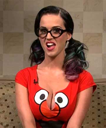 Perry filmed a segment for SNL’s mock chat show Bronx Beat, dressed in a skin-tight Elmo T-shirt, cut open to reveal the cleavage which offended YouTube viewers and saw her booted from Sesame Street’s New Year’s Eve episode line up.